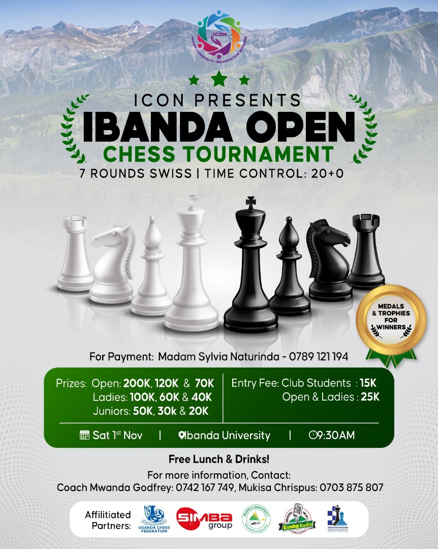 Ibanda University Ibanda Municipality, IbandaICON Presents: IBANDA OPEN CHESS TOURNAMENT Format: 7 Rounds SwissTime Control: 20+0 📅 Date: Saturday, 1st November📍 Venue: Ibanda University🕤 Time: 9:30 AM 💰 Prizes Open Category 1st Place: 200K 2nd Place: 120K 3rd Place: 70K Ladies Category 1st Place: 100K 2nd Place: 60K 3rd Place: 40K Juniors Category 1st Place: 50K 2nd Place: 30K […]
